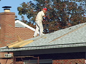 Есть ли мужчина на этом доме? Нет, нет (нет его на крыше дома). |