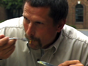 | L’uomo sta mangiando. | Мужчина ест. | ||