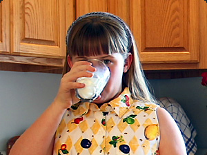 | La donna e la bambina stanno bevendo il latte. | Женщина и маленькая девочка пьют молоко. | ||