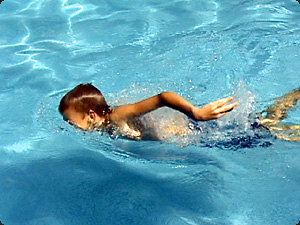 | Che cosa sta facendo il bambino? Il bambino sta nuotando. |