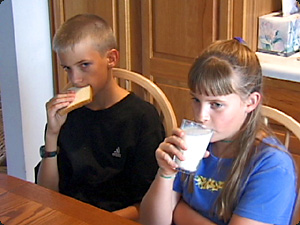 | Quale bambino sta mangiando il pane? Il bambino sta mangiando il pane. |