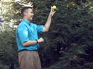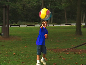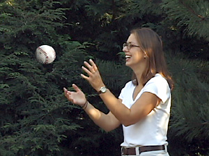 | La donna prende la palla gialla. | Женщина ловит желтый мяч. | ||
