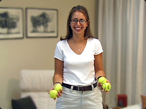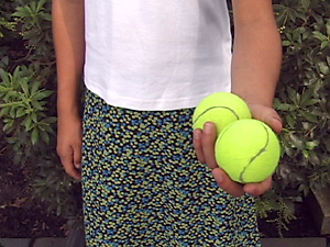 | Due palle gialle sono nella sua mano destra. | В её правой руке два жёлтых мяча. | ||