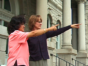 | Tutte e due le donne stanno indicando. Una sta indicando con la mano destra e l’altra con la mano sinistra. | Обе женщины указывают. Одна указывает правой рукой, другая — левой. | ||