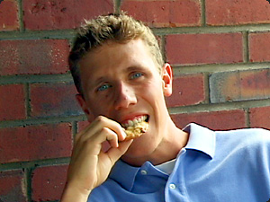 | Questo giovane ha del cibo in bocca. | У этого молодого человека во рту еда. | ||