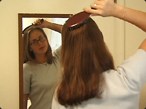 | La donna si sta pettinando i capelli. | Женщина расчесывает свои волосы. | ||