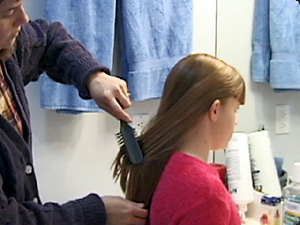 | La donna sta spazzolando i capelli della bambina. | Женщина расчесывает волосы девочки. | ||