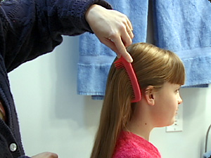 | La donna sta pettinando i capelli della bambina. | Женщина расчесывает волосы девочки. |