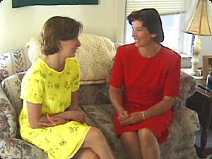 | Una donna porta un vestito giallo e un’altra donna porta un vestito rosso. | Одна женщина в желтом платье, а другая — в красном. | ||