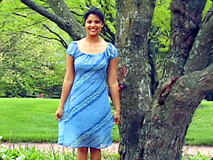 | Lei porta un maglione rosso e bianco e i jeans. | Она в красно-белом свитере и джинсах. | ||