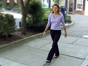 | La donna porta pantaloni neri. | Женщина одета в черные брюки. | ||