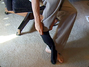 | Lui si sta mettendo un calzino. | Он надевает носок. | ||