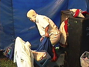 | Il pagliaccio si sta mettendo i pantaloni. | Клоун надевает штаны. | ||