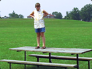 | I bambini sono sul tavolo. Loro non stanno giocando a saltare alla corda. | Дети на столе (стоят). Они не играют в "прыгать через верёвку". | ||