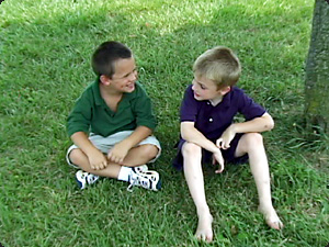 Сколько мальчиков сидят? Два. |