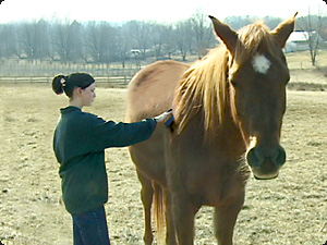 | Quale cavallo la ragazza sta spazzolando? Il cavallo marrone. | Какую лошадь чистит девочка? Коричневую. | ||