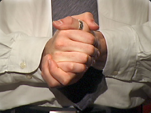 | I piedi sono separati e le mani sono unite. | Ступни разделены, и руки соединены. | ||