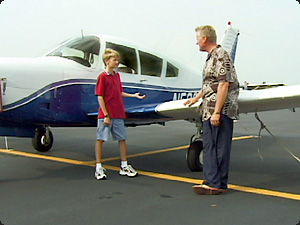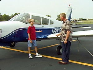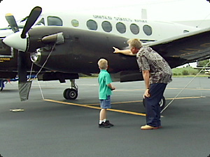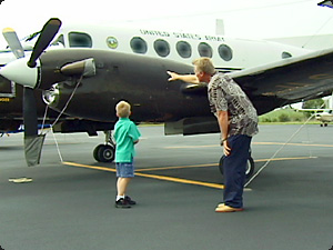 | L’uomo sta parlando dell’aereo al bambino. | Мужчина разговаривает с ребёнком о самолёте. | ||
