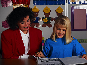| Questa donna sta parlando del libro alla bambina. | Эта женщина разговаривает с маленькой девочкой о книге. | ||