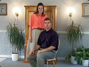 | La donna è seduta su una sedia accanto a suo marito. | Женщина сидит на стуле рядом со своим мужем. | ||
