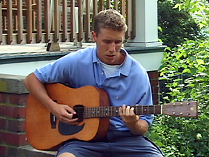 | Che sta facendo l’uomo? Sta suonando la chitarra. |