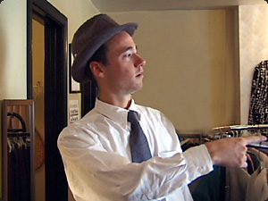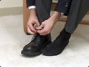 | Che sta facendo l’uomo? Si sta mettendo il maglione. |