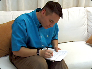 | Che sta facendo l’uomo? Sta seduto con suo figlio. |