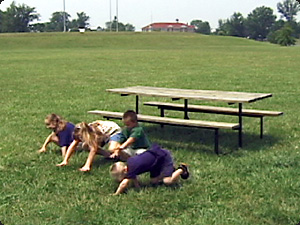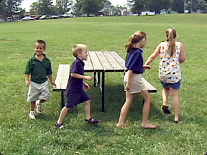 | I bambini camminano intorno al tavolo. | Дети ходят вокруг стола /вместе/. | ||