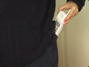 | L’uomo userà il telefono portatile. Lo sta tirando fuori dalla tasca. |