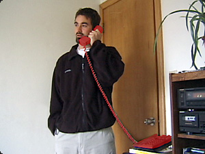 | L’uomo sta usando un telefono rosso. | Мужчина использует телефон красный. |