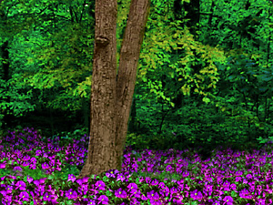 "Деревья и цветы фиолетовые много /цветы/." Деревья и много фиолетовых цветов. |