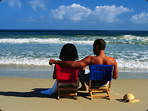 Погода жаркая. Люди эти соответственно загорают /вместе/. |
