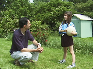 | La donna lancerà la palla. | Женщина бросит мяч. | ||
