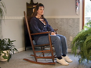 | La donna è seduta sulla sedia a dondolo. | Женщина сидит нс стуле качающемся (кресло-качалка). | ||