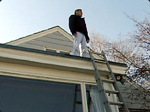 | L’uomo sta salendo la scala a pioli. | Мужчина взбирается вверх по лестнице. | ||