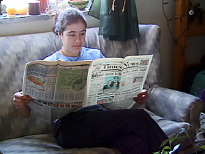 | La donna sta leggendo il giornale. | Женщина читает газету. | ||