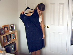 | La donna si sta mettendo il vestito. | Женщина одевает платье. | ||
