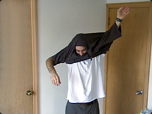 | L’uomo si sta mettendo la maglietta. | Мужчина одевает ("/в процессе/ носит") рубашку. | ||