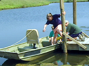 | La ragazza sta salendo sulla barca. | Девочка спускается в лодку (садится в лодку). | ||