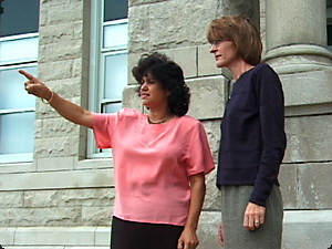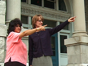 | Tutte e due le donne stanno indicando. | Женщины, обе, указывают /вместе/. | ||