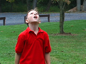 | Il bambino sta guardando in alto. | Мальчик смотрит вверх. | ||