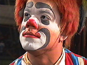 | Il pagliaccio sta guardando in basso. | Клоун смотрит вниз. | ||