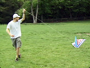 Мужчина пытается чтобы /будет/ запустить змея. |