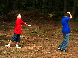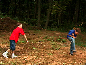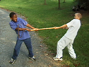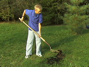 | I ragazzi stanno tirando il rastrello. | Мальчик тянет грабли /вместе/. | ||