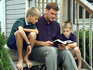 "Отец /в процессе/ читает /к/даёт/сыновьям