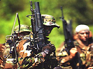 | I soldati portano le armi da fuoco e anche questi soldati ne stanno portando. |