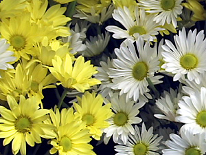 | Alcuni fiori sono gialli e alcuni sono bianchi. |