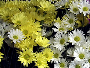 Некоторые цветы жёлтые и некоторые цветы белые. |