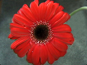 Большая часть цветка красная, но имеется одна часть его - жёлтая. |