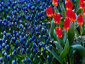 | Alcuni di questi fiori sono gialli e gli altri sono blu. |